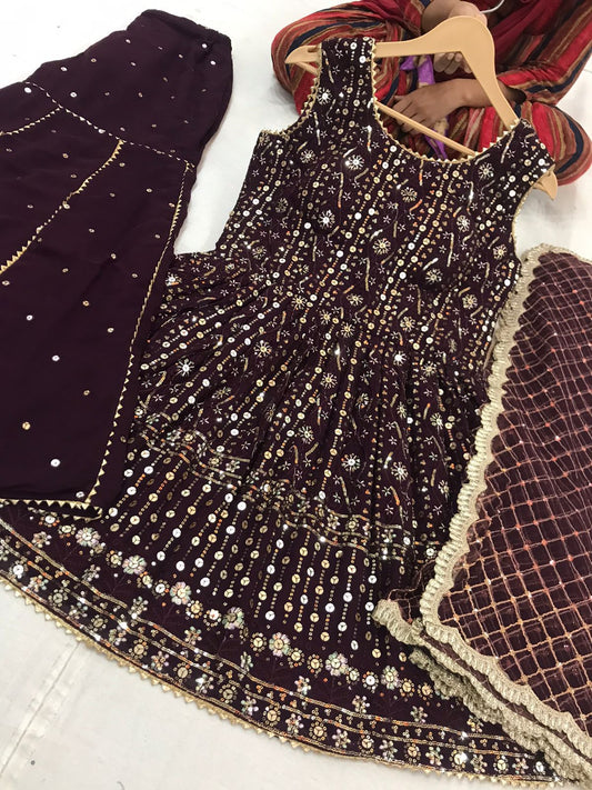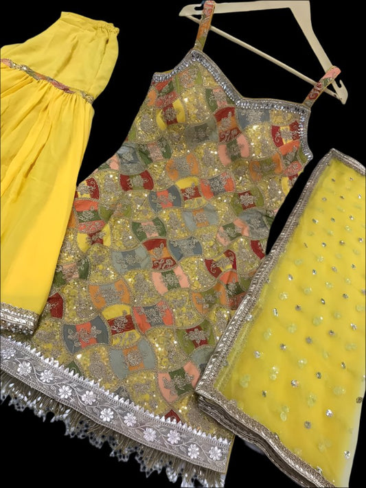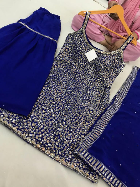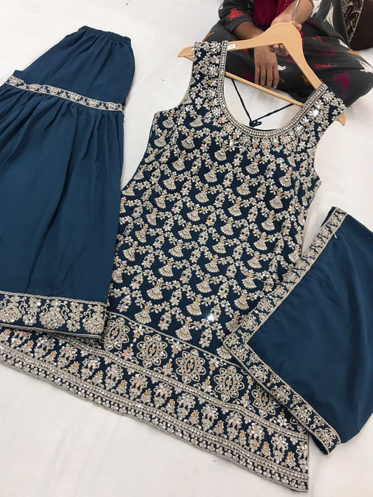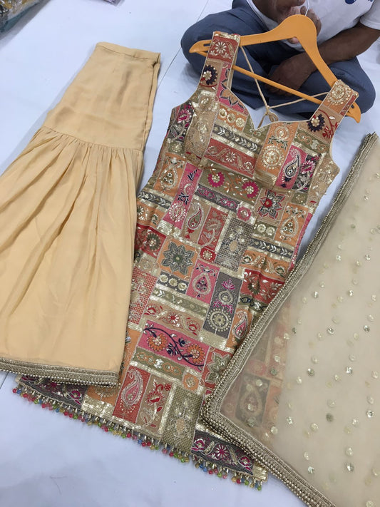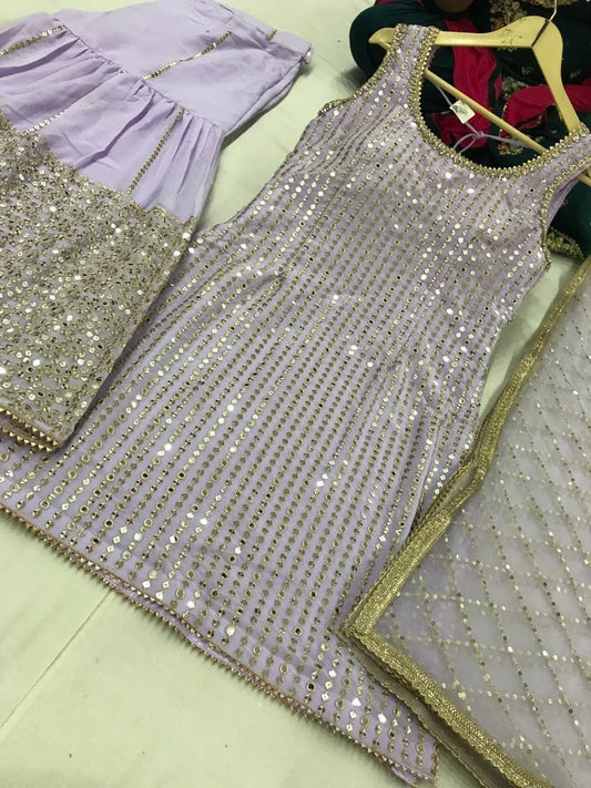 Mirror Work Embroided Sharrara Suit